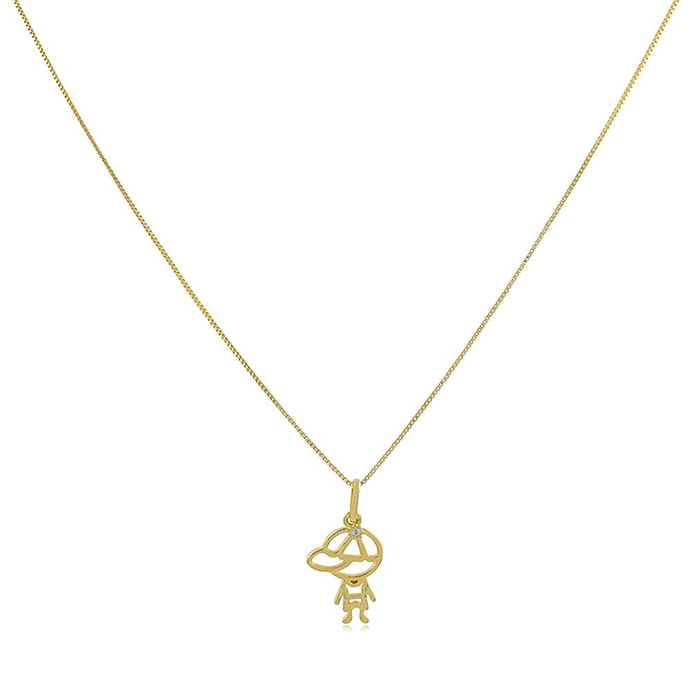 Detalhes do Colar com pingente menino banhado a ouro 18k