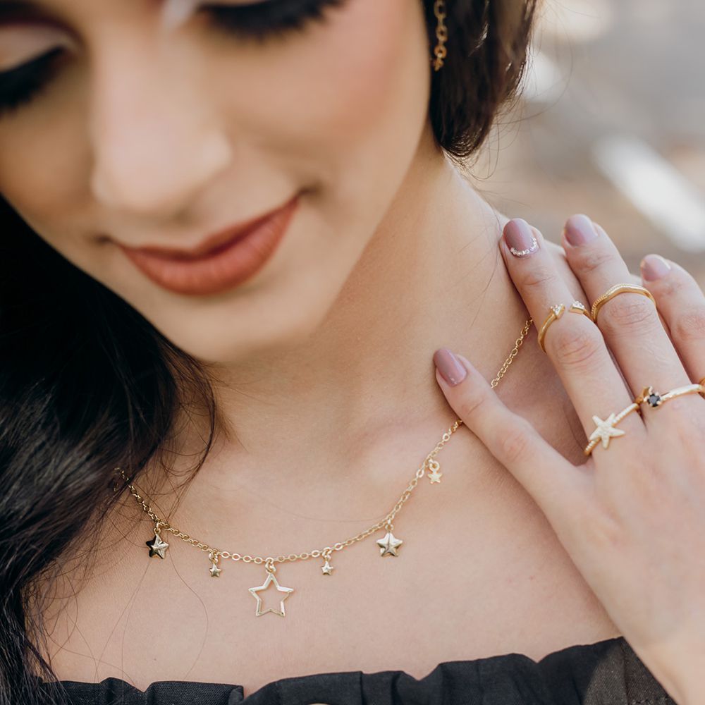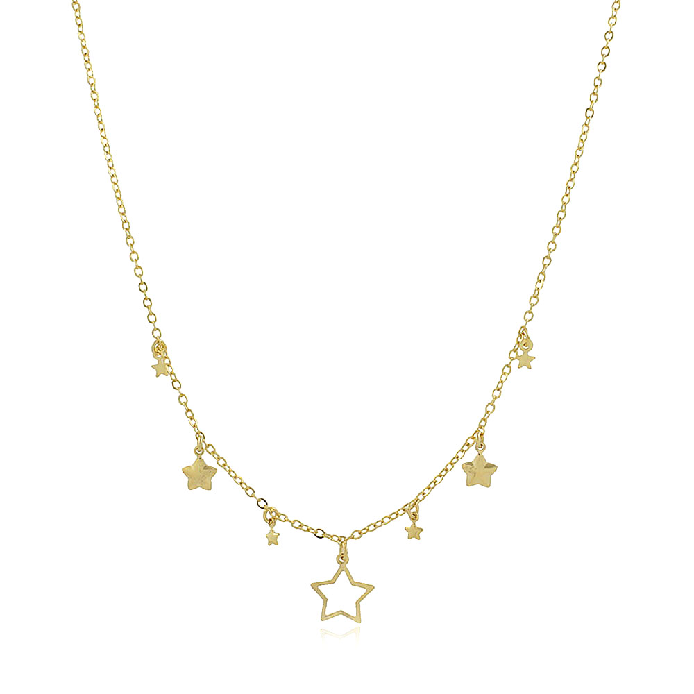 Detalhes do Colar estrela vazada e mini estrelas banhado a ouro 18k