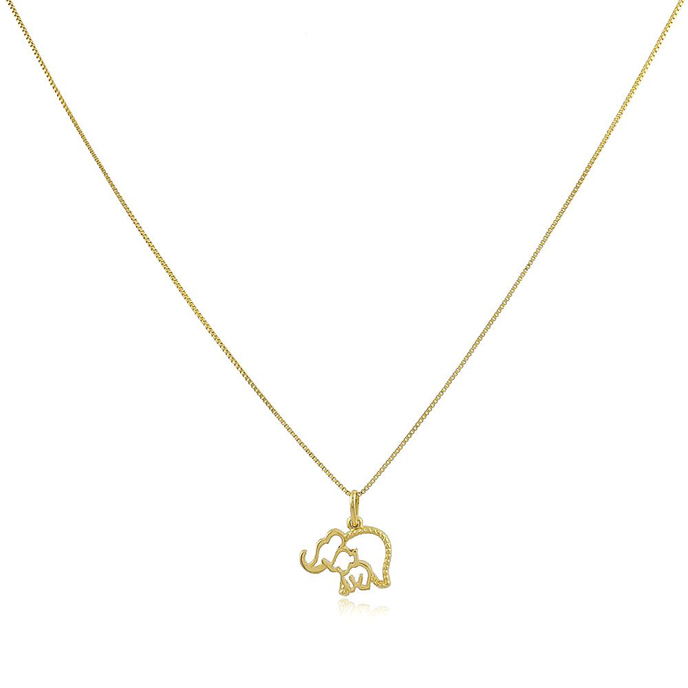 Colar Infantil com pingente elefante mãe e filhote banhado a ouro 18K