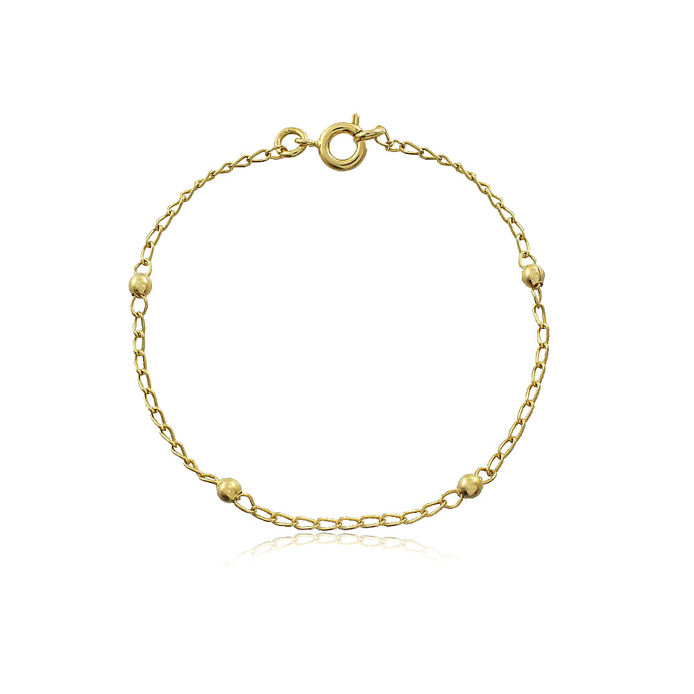 Detalhes da Pulseira infantil de bolinhas banhada a ouro 18k